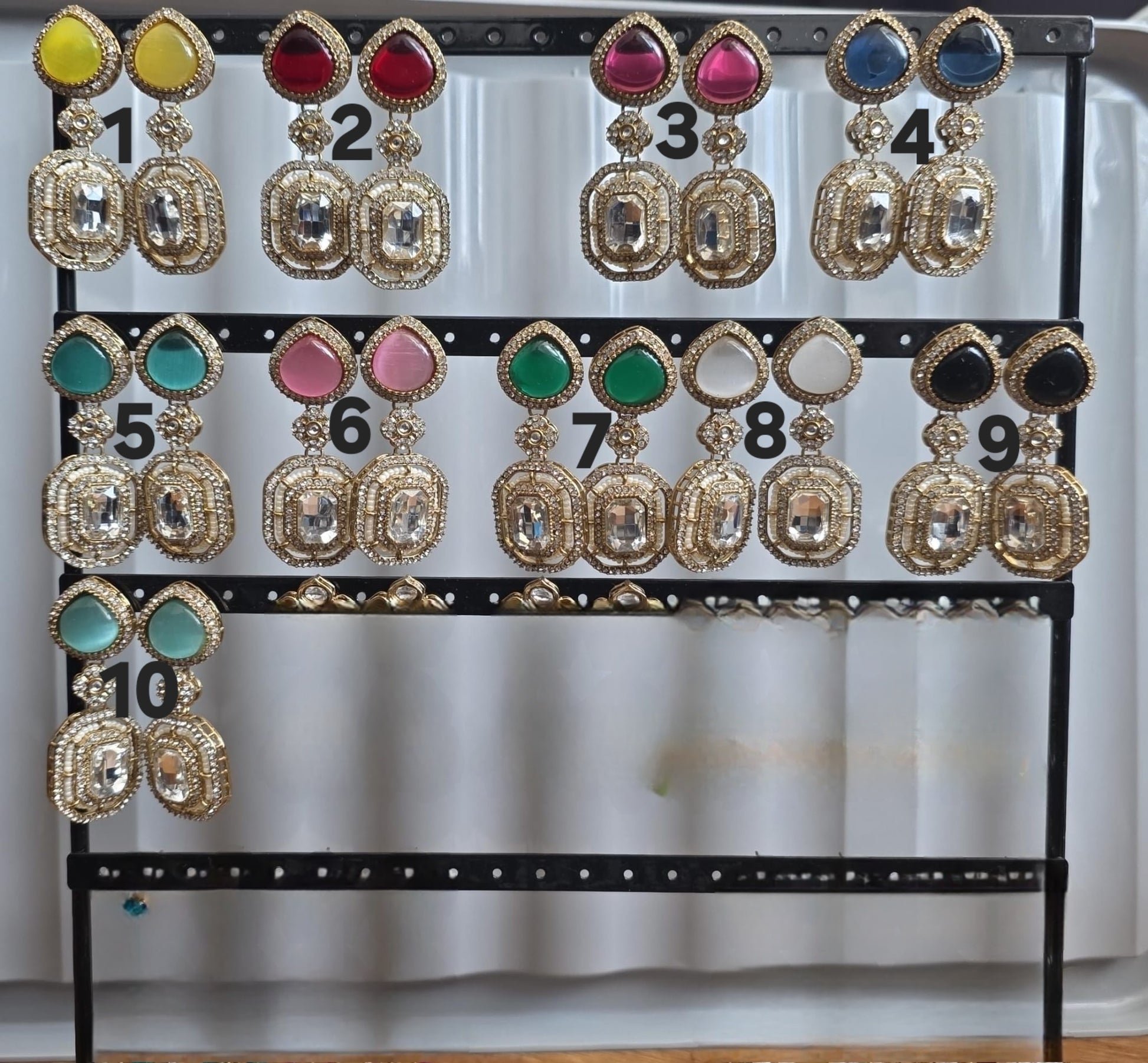 Add elegance to your look with these stunning Indian ethnic stone drop earrings. Designed with vibrant colored stones, gold-plated detailing, and sparkling crystal accents, these earrings are ideal for weddings, parties, festivals, Navratri, Diwali, and other special occasions. A timeless statement jewelry piece that pairs beautifully with sarees, lehengas, anarkali suits, kurtis, and evening wear. Lightweight yet eye-catching, these traditional earrings also make a thoughtful gift for women who love Indian, Asian, and ethnic fashion jewelry.