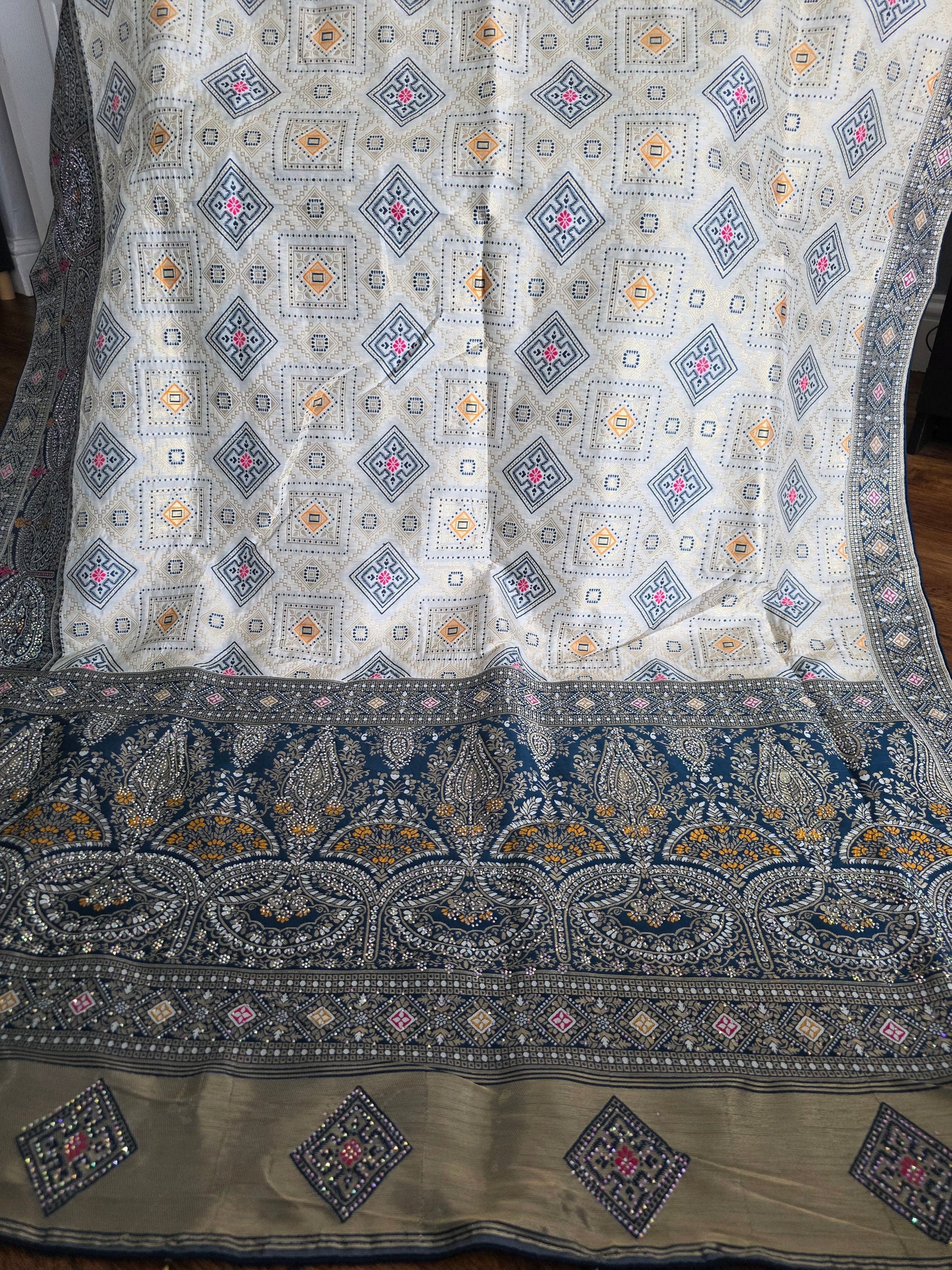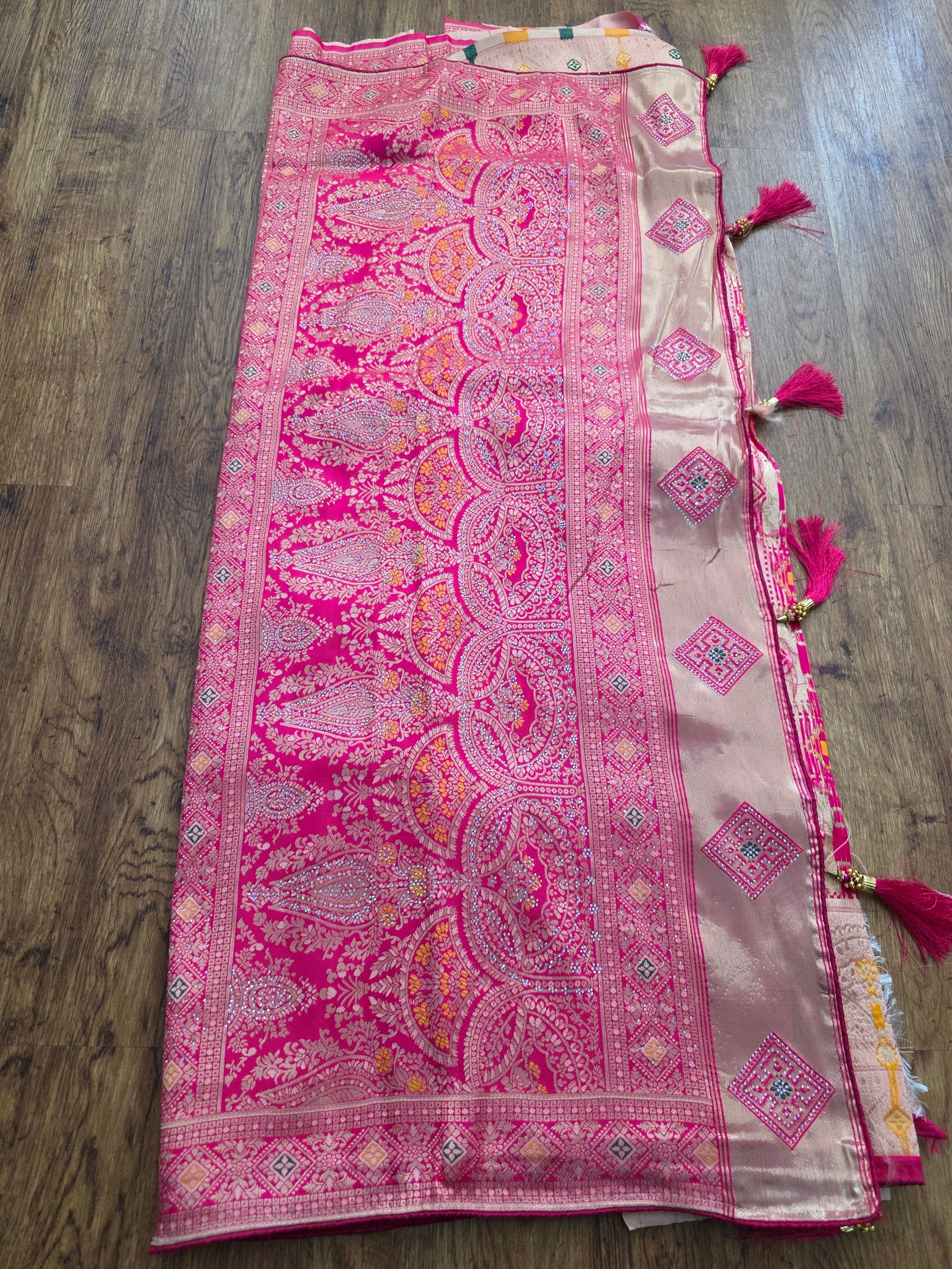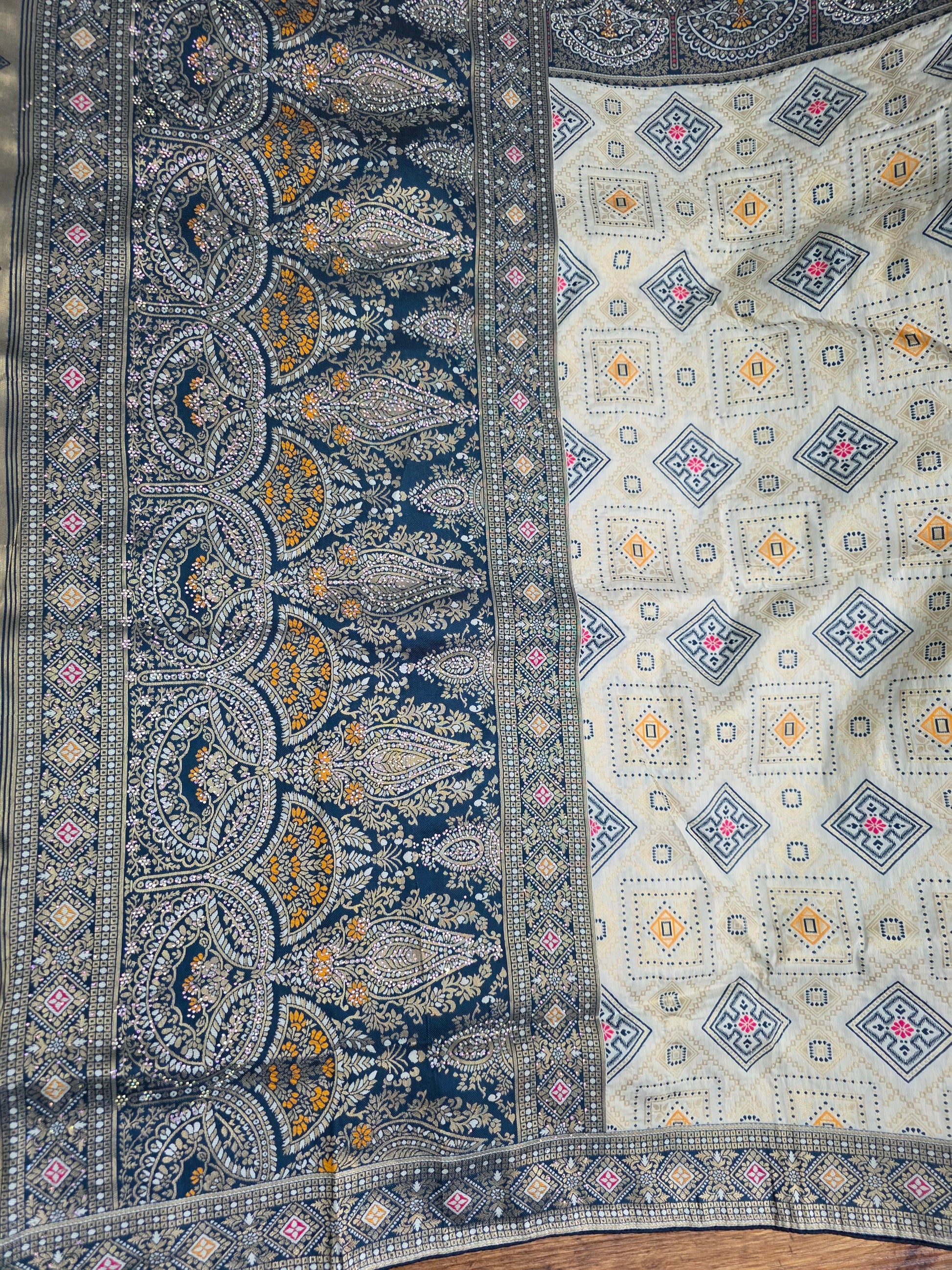 Patola Inspired Silk Saree with Meenakari Print – Traditional Wedding & Festive Wear